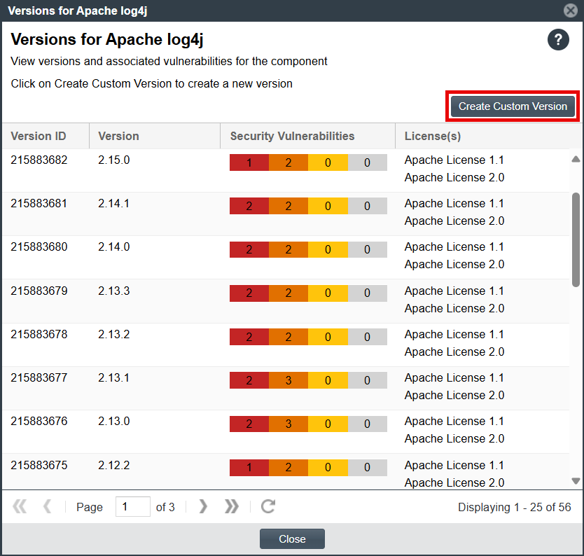 If you have a selected the only license in the System Suggested License category, the new version is created. Click Close to return to the previous window.